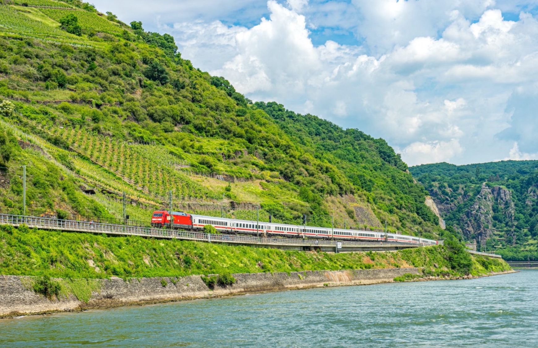 Поїзд повільно проїжджає берегом річки Рейн, відкриваючи краєвиди на виноградники, круті скелі, середньовічні міста Бахарах, Обервезель і Рюдесхайм, а також десятки замків, які стоять майже на кожній гірській вершині. Цю ділянку часто називають «романтичним Рейном».